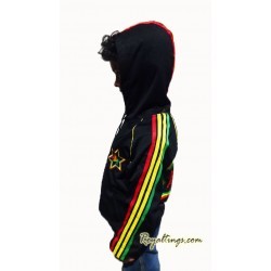 Broderie coté coeur, Sérigraphie couleurs au dos, bandes vert jaune rouge surpiquées